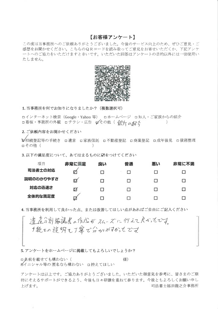 遺産分割協議書の作成がスムーズに行えて良かったです。